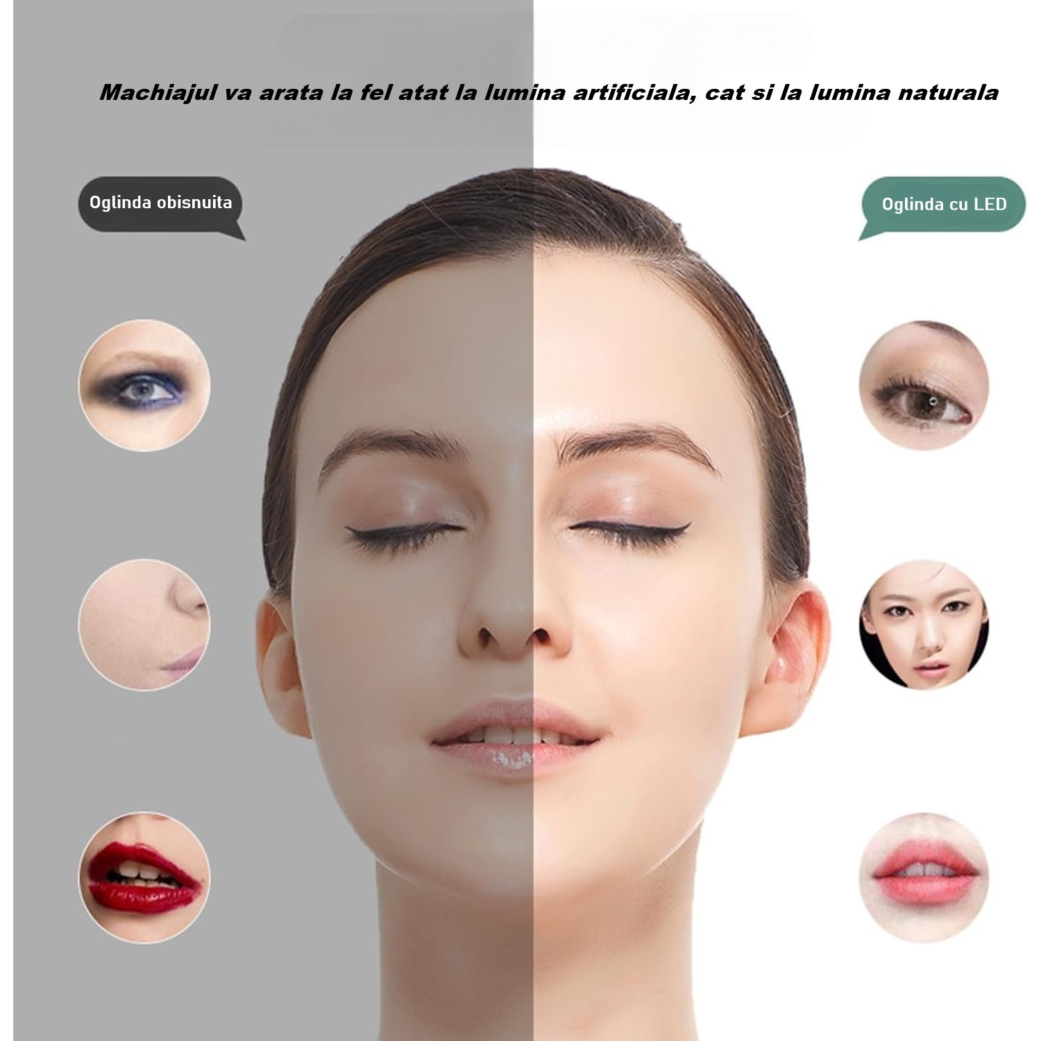 Geanta noastra de machiaj are lumini LED reglabile, lumina pe 3 niveluri de intensitate (3200k-4800k-7300k) pentru a va satisface si pentru a va imbunatati claritatea fetei pentru un machiaj adecvat, cu o oglinda reglabila mare 4K cu comutator tactil, pentru o vedere mai apropiata si mai clara.