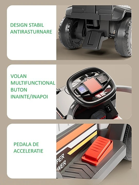 Mașinuță Electrică pentru Copii, cu Telecomandă și Mâner Detașabil, Lumini LED și Muzică, +1 An