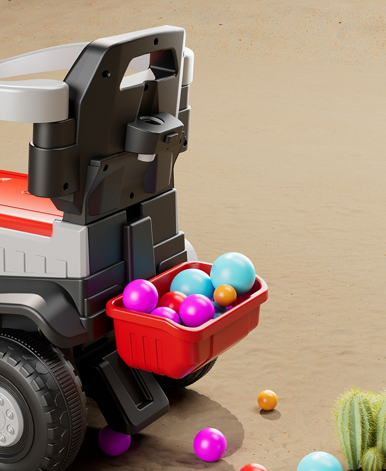Include un coș dedicat pentru depozitarea jucăriilor sau a accesoriilor.